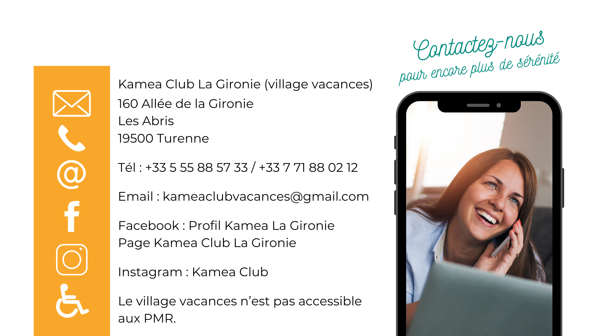 veuillez nous adresser un mail à kameaclubvacances@gmail.com, en nous indiquant les coordonnées du responsable de groupe (notion de groupe avec un seul correspondant), vos dates d’arrivée et de départ, le nombre d’adultes, d’enfants par tranche d’âge (0-2 ans/3-10 ans/11 ans et +), la pension choisie (demi-pension ou pension complète), la raison du groupe (exemple : mariage, anniversaire, séminaire, cousinade, association, etc…), et s’il y a des prestations en supplément (location de salle, animation DJ, repas à thème, brunch, pause gourmande, « apéro » organisé, gâteau pâtissier pour événement, etc…).